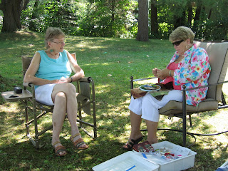 On Monday all of MCQ was invited to spend the day at the Englunds Cottage. The only pictures I took were in the morning of us early attenders. I didn't have my camera out later, while we ate from a huge baked potato buffet, sat on the deck overlooking the lake, played with soy wax batik and painted fabrics. It was such a fun day!